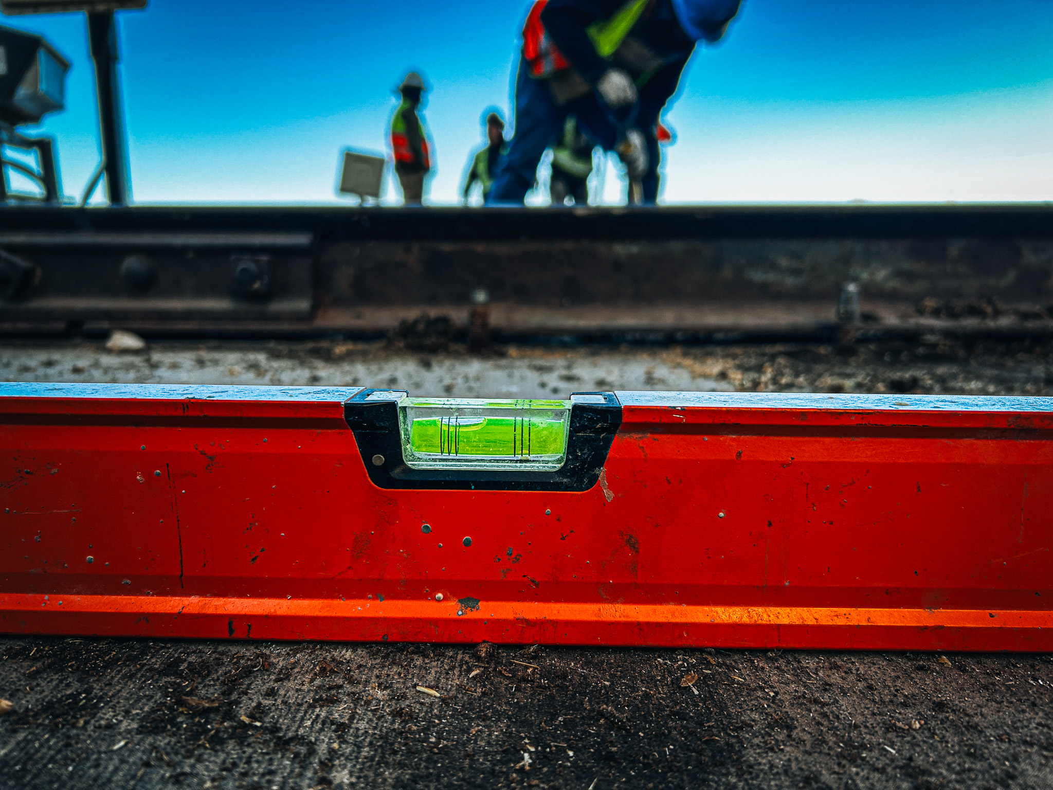 The affected section of track crossed over an underground concrete tunnel used to house electrical and communication lines. To support that crossing, the system was engineered with four heavy concrete pads, each roughly: